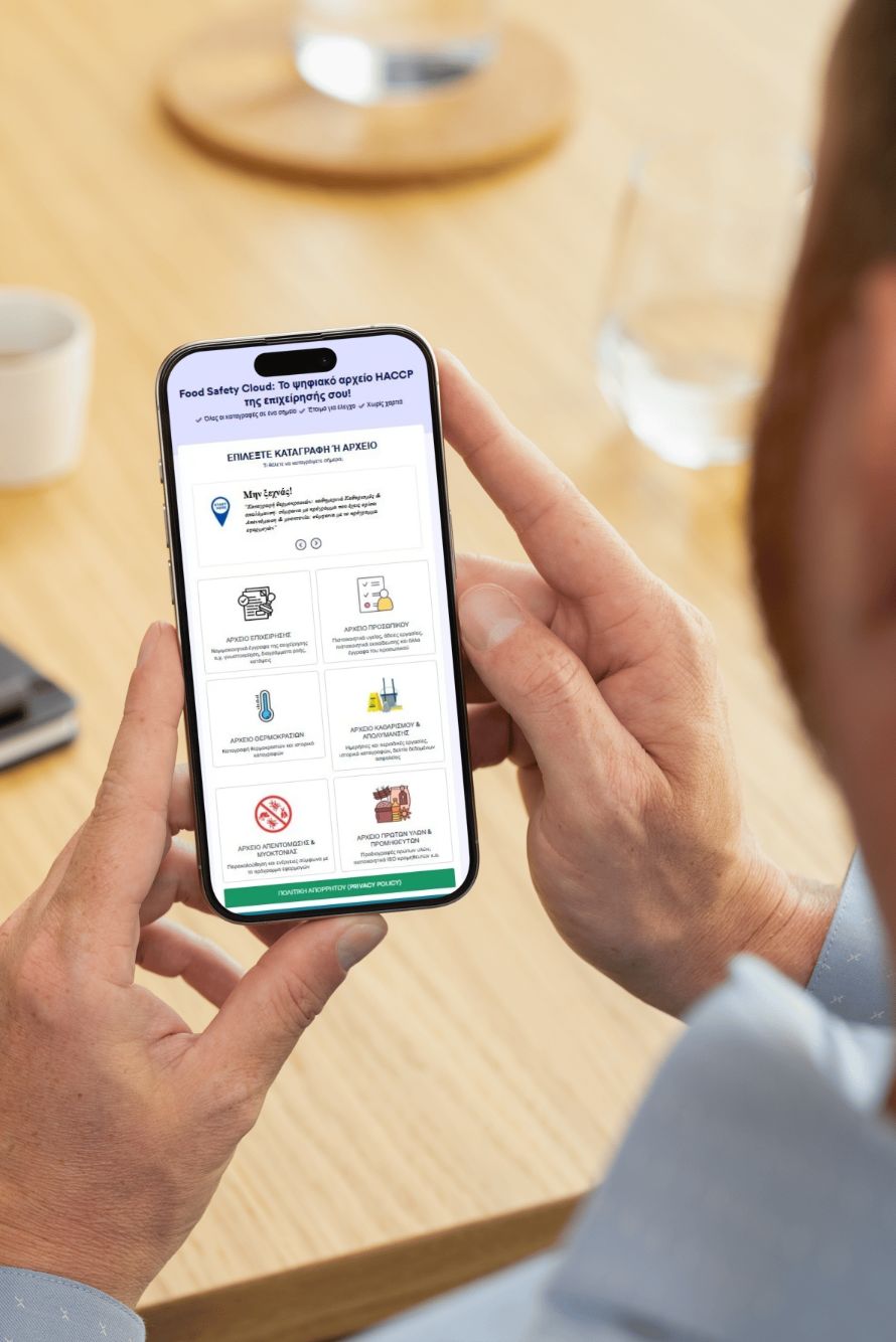 Η πλατφόρμα παρέχει εργαλείο ψηφιακής καταγραφής και διαχείρισης αρχείων HACCP.